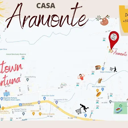 La Fortuna nevezetességei közé tartozik a Fortuna Park és a Kalambu Hot Springs aquapark, amelyek 1 km-re, illetve 6 km-re találhatók az ingatlan területétől. Ezenkívül az El Salto (2 km) szintén ajánlott a látogatásra.